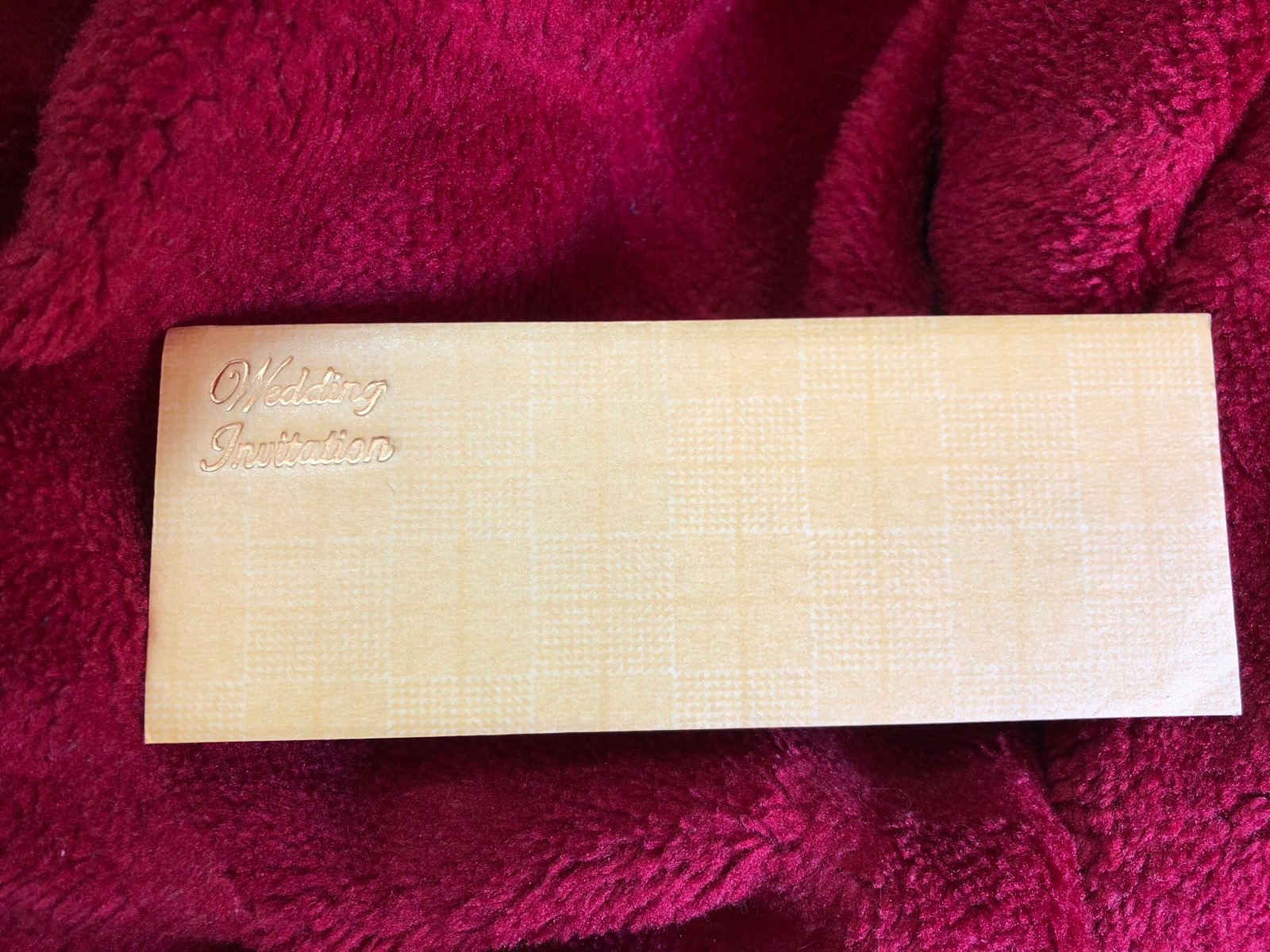 ₹10.00A simple and classy wedding card in a soft peach colour, paired with a matching envelope. Designed in a letter-style format and tied with a golden thread, it adds a touch of traditional charm. The golden printing enhances the look without making the design heavy, giving the card a clean, graceful, and modern feel. Perfect for couples who prefer a stylish yet minimal wedding invitation.