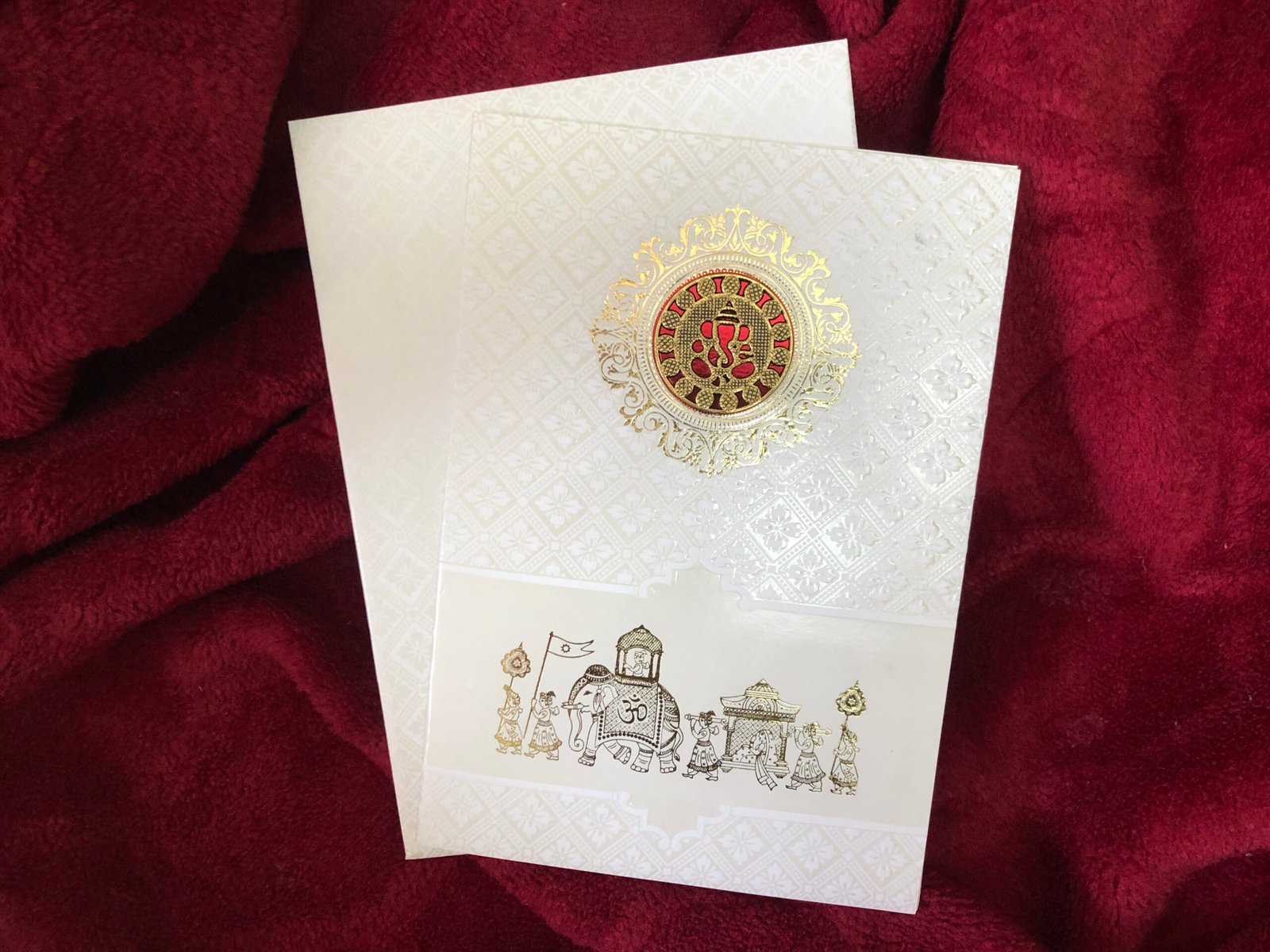 ₹16.00Whether you’re planning your wedding in Panjim, Mapusa, Margao, or any corner of Goa, this invitation card blends traditional Indian aesthetics with modern design. The cream color symbolizes purity and elegance, while the thoughtful design ensures a memorable unboxing experience for your guests.
