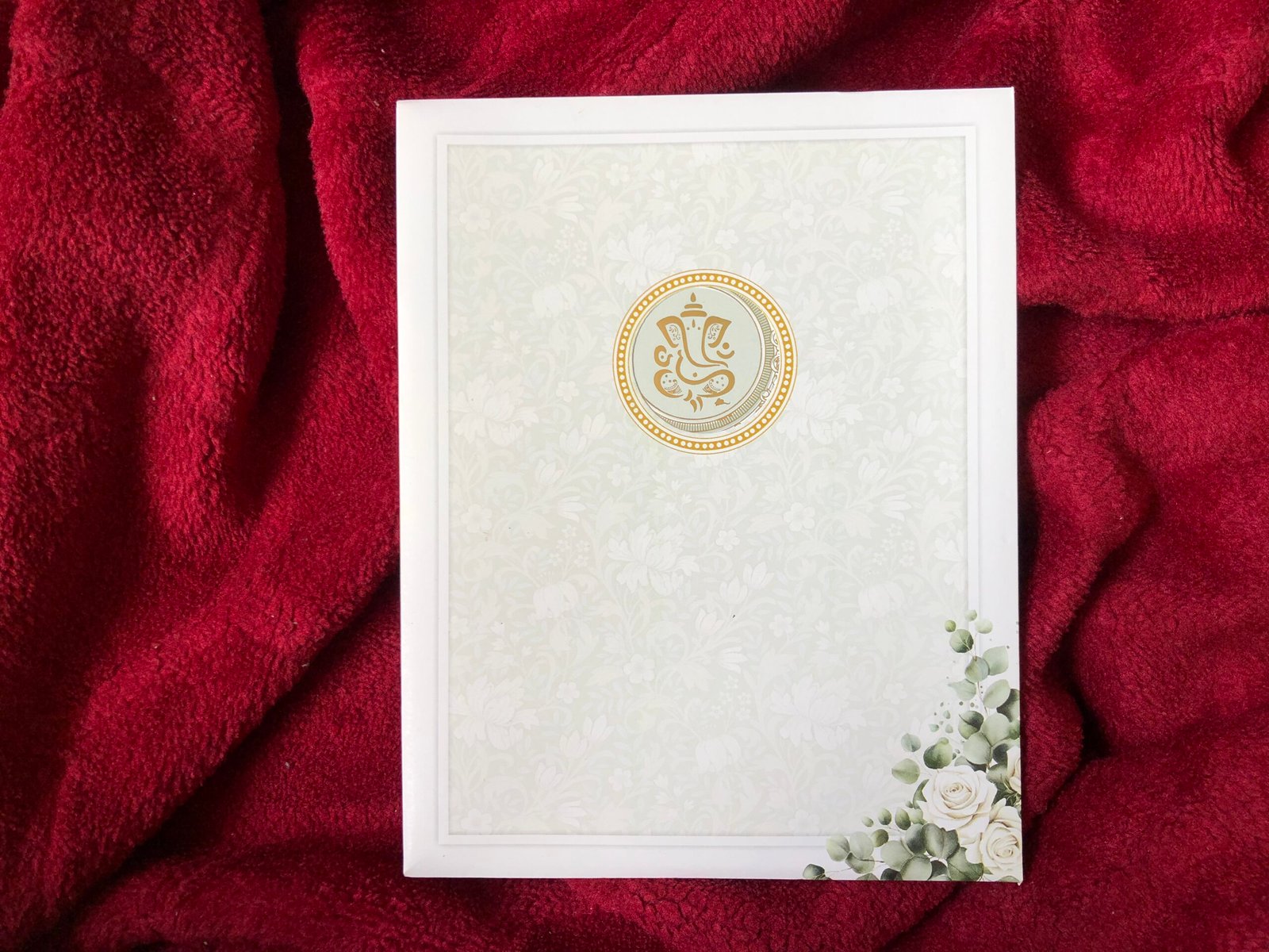 Luxury Floral Wedding Card with Golden Ganesh 021