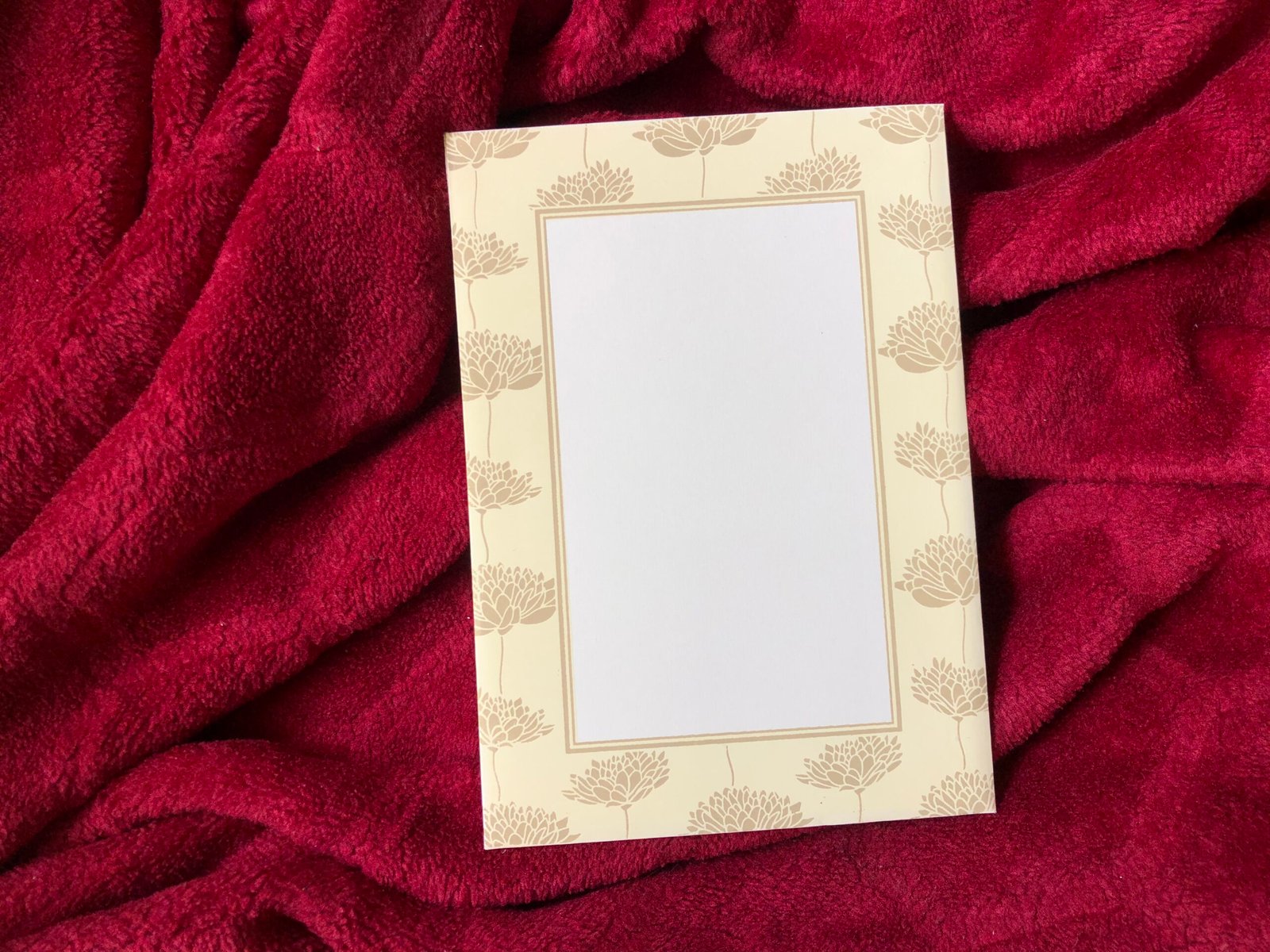 A delicate floral border enhances the card’s charm without crowding the layout, keeping the design clean, classy, and visually appealing. The matching envelope completes the set with a coordinated look.