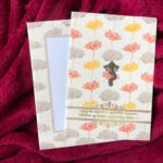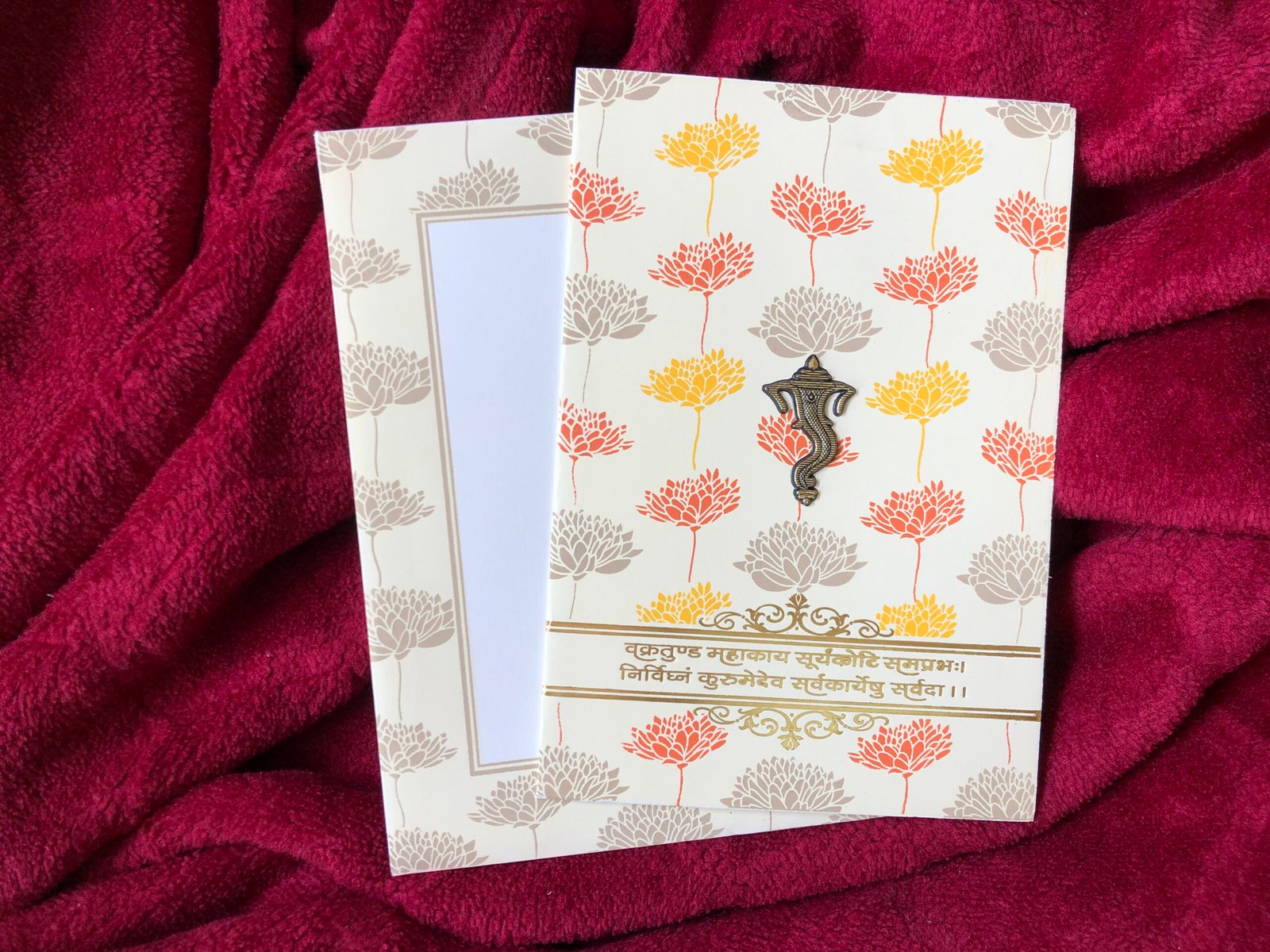The card features a tasteful golden Ganesh motif at the top, symbolizing prosperity and auspicious beginnings. Below it, the sacred shloka is beautifully printed: