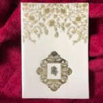 Laser Cut Bag Style Hindu Wedding Card in Off White 019