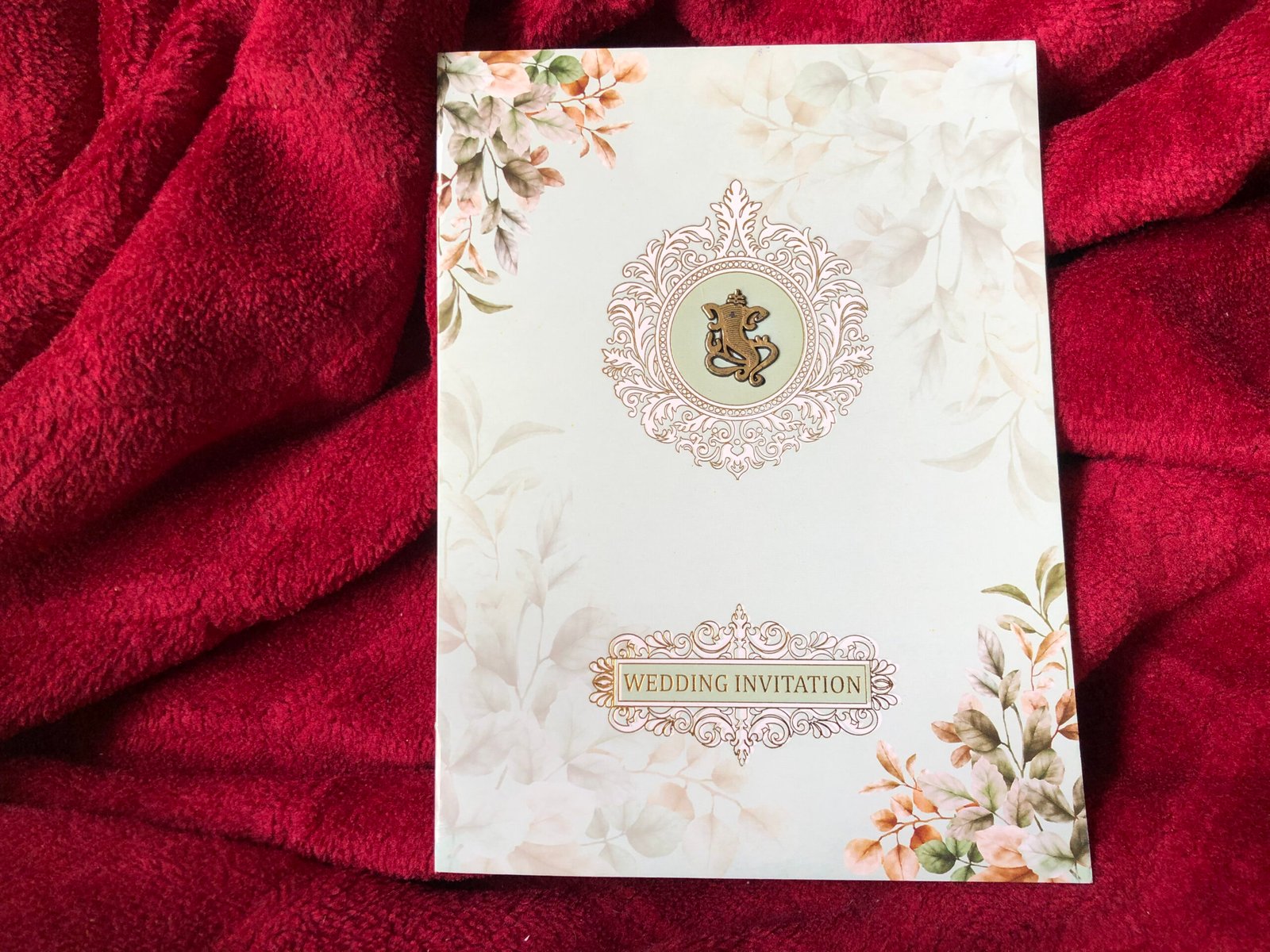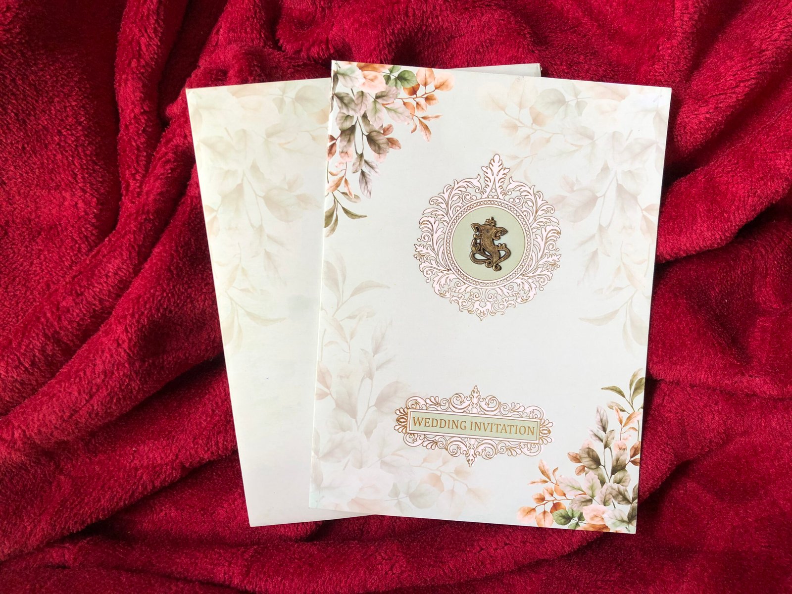 Luxury Floral Wedding Card with Golden Ganesh 021