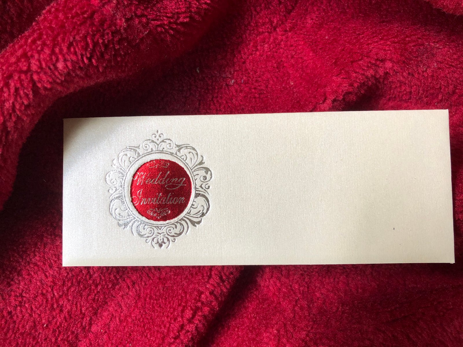 - Quantity of product Pouch Style Golden & Red Wedding Invitation - 141 can not be less than 50