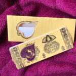 A beautiful turmeric yellow wedding invitation featuring a stylish leaf cutout on the right side. Inside, the card has attractive printing with a golden and pink Ganesh design and matching golden detailing along the sides. Simple yet eye-catching, this invitation brings a perfect blend of tradition and elegance.