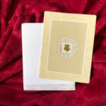 A simple and elegant wedding invitation crafted in a soft cream and off-white colour combination. The envelope features a clean, minimal design accented with a golden Ganesha clipart in rich gold foil, adding a touch of tradition and auspiciousness.