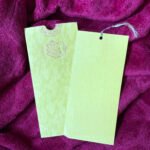 Golden yellow letter-style wedding invitation with a simple and elegant look. The inner card is tied with a golden thread, giving it a classic letter-pouch appearance. The overall design is minimal, neat, and traditional, perfect for a premium yet simple invitation style.